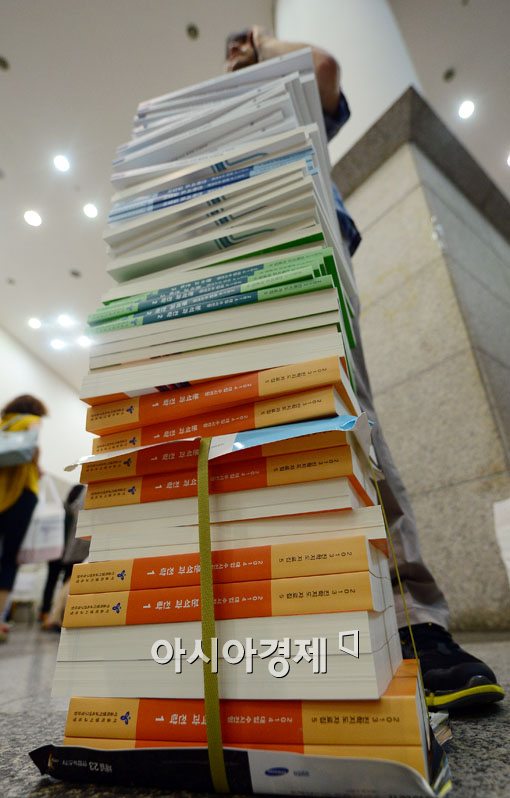 [아시아경제 백소아 기자] 2014년도 대학입시 수시입학 진학담당 교사 설명회에서 서울지역 고등학교 교사들이 수시입학 진학 관련 서적들을 챙기고 있다.백소아 기자 sharp2046@<ⓒ세계를 보는 창 경제를 보는 눈, 아시아경제(www.asiae.co.kr) 무단전재 배포금지>