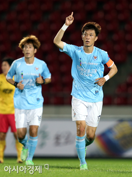 [성남=아시아경제 정재훈 기자] 16일 오후 성남 탄천종합운동장에서 열린 '현대 오일뱅크 K리그 클래식 2013' 성남 일화와 대구FC의 경기. 선제골을 넣은 대구 이지남이 기뻐하고 있다.정재훈 기자 roze@<ⓒ세계를 보는 창 경제를 보는 눈, 아시아경제(www.asiae.co.kr) 무단전재 배포금지>