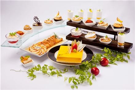 [아시아경제 오주연 기자]그랜드 앰배서더 서울의 로비라운지&델리는 다음달 31일까지 입안 가득 향긋함을 전해줄 '피치&플럼 디저트 뷔페'를 매주 주말 오후 2시부터 오후 5시까지 선보인다고 17일 밝혔다.여름 제철과일인 복숭아와 자두는 필수 아미노산과 비타민이 다량 함유되어 여름 무더위에 지친 몸에 활력을 불어넣어주며 피부미용에도 탁월한 효과가 있다. 이번 피치&플럼 프로모션에는 복숭아와 자두로 만든 20여가지의 다양한 디저트를 선보인다.바삭바삭한 퍼프 패이스트리와 상큼한 복숭아가 어우러진 ‘복숭아 타르트’, 촉촉한 ‘자두 치즈 케이크’, 새콤달콤한 프랑스 전통 디저트인 ‘자두 클라푸티’ 등 입안 가득 향긋함을 선사할 과일 디저트와 샌드위치, 과일 및 마쉬멜로우와 함께 즐길 수 있는 초콜릿 파운틴이 제공된다. 시원한 복숭아, 자두 에이드와 얼그레이 티, 커피가 함께 준비되어 디저트류를 더욱 맛있게 즐길 수 있다. 무더위로 지치기 쉬운 여름, 피치&플럼 디저트 뷔페로 달콤한 디저트와 함께 여유로운 주말을 즐겨보자. 가격은 성인 3만5000원, 어린이 1만7500원이다.(부가세 포함)문의 02-2270-3101 오주연 기자 moon170@<ⓒ세계를 보는 창 경제를 보는 눈, 아시아경제(www.asiae.co.kr) 무단전재 배포금지>