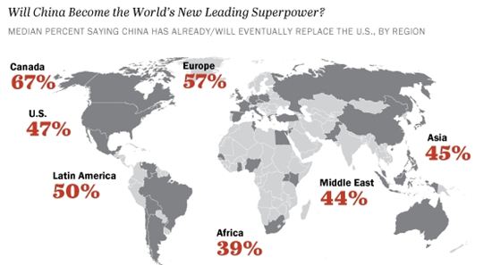 [아시아경제 박선미 기자]2008년 글로벌 금융위기 이후 중국이 빠르게 세계 '수퍼파워'로 부상하며 경제 권력의 중심축이 서방 국가에서 아시아쪽으로 이동하고 있는 것으로 드러났다. 머지않은 미래에 중국이 미국을 제치고 세계 최강국(Superpower) 자리를 꿰찰 것이라고 보는 여론의 시각이 지배적이다.미국 여론조사 전문기관인 퓨 리서치센터가 18일(현지시간) 세계 경제 두 개의 중심축인 미국과 중국의 이미지에 대한 여론조사 결과를 발표했다. 이번 여론조사는 퓨리서치가 지난 3월2일~5월1일 기간 동안 세계 39개국 3만7653명을 대상으로 양국에 대한 ▲'수퍼파워' 인식 변화 ▲호감도 ▲관계 친밀도 ▲개인의 자유 존중 여부 등을 물었다.현재의 세계 최강국을 가리는 질문에 미국이 41%, 중국이 34% 표를 얻어 미국이 명실상부한 세계 최강국 자리를 꿰차고 있는 것으로 드러났지만 미국은 5년 전 조사 때 보다 적은 표를 얻은 반면 중국은 지지표가 많아졌다. 이번 조사에서 많은 사람들은 중국이 세계 '수퍼파워'로 부상하고 있다는데 인식을 같이 했다. 미국에서 조차 응답자의 47%, 즉 절반 가량이 중국이 세계 최대 강국 자리를 놓고 미국을 추월하고 있거나, 추월할 예정이라고 답했다. 지역별로는 캐나다(67%), 유럽(57%), 남미(50%) 순으로 앞으로 중국이 세계 최대 강국이 될 것이라고 예상했다.미국과 중국에 대한 세계 각국의 호감도 조사에서는 미국이 63%, 중국이 50%를 기록, 미국에 더 호의적인 것으로 조사됐다. 지역별로는 캐나다, 유럽, 남미, 아프리카, 아시아 지역에서 미국을 중국 보다 더 호의적이라고 꼽았다. 유일하게 중동 지역에서만 중국의 호감도가 45%를 기록, 21%를 나타낸 미국 보다 높았다.양국의 관계 친밀도 조사에서는 미국에서 59%가 양국을 파트너 관계로 인식하고 있는 반면 중국에서는 39%만이 파트너라고 생각했다. 양국 정부가 각 국의 이익을 잘 고려하고 있느냐는 질문에 대해서는 미국의 경우 "고려하지 않고 있다"의 비중이 58%로 나타났고 중국은 이보다 더 높은 63%를 기록했다.한편 4개국 가운데 1개국 꼴로 중국이 개인의 자유를 존중하고 있다고 답한 반면, 세계 각국의 95%가 미국이 개인의 자유를 보장하고 있다는데 의견을 같이했다. 퓨 리서치에서 이번 조사 작업을 주도한 브루스 스토크는 "개인의 자유 존중 여부가 국가 호감도 결과에 막대한 영향을 미쳤다"면서 "중국 정부는 이번 결과로 개인의 자유 존중 문제에 대해 생각을 해봐야 할 것"이라고 말했다. 또 "중국이 미국을 제치고 세계 최대 강국으로 부상할 것이라는 예상이 중국에 대한 호감도를 낮추는 원인으로 작용하고 있다"고 분석했다.박선미 기자 psm82@<ⓒ세계를 보는 창 경제를 보는 눈, 아시아경제(www.asiae.co.kr) 무단전재 배포금지>