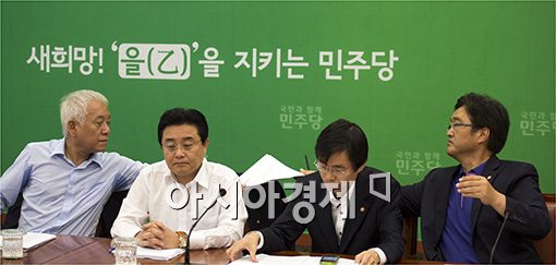 [아시아경제 윤동주 기자] 김한길(왼쪽) 민주당 대표가 19일 서울 여의도 국회에서 열린 최고위원회의에서 우원식(오른쪽) 의원에게 회의 자료를 건네받고 있다.윤동주 기자 doso7@<ⓒ세계를 보는 창 경제를 보는 눈, 아시아경제(www.asiae.co.kr) 무단전재 배포금지>