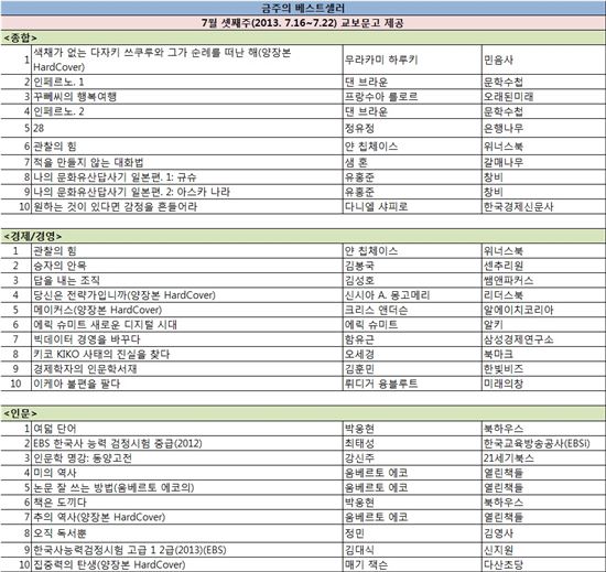 [BOOK]금주의 베스트셀러-7월 셋째주