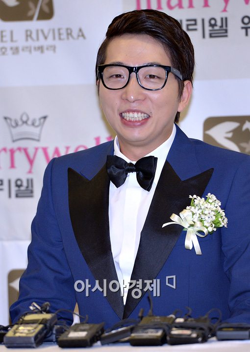[아시아경제 송재원 기자] 개그맨 정범균이 20일 오후 서울 강남구 청담동 리베라 호텔에서 열리는 결혼식에 앞서 기자회견을 갖고 있다.정범균의 예비신부는 일반인 여성으로 현재 임신 중이다. 정범균은 여자친구와 1년 여의 교제 끝에 웨딩마치를 울리게 됐다. 정범균 결혼식 사회는 동료 개그맨 최효종, 축가는 에픽하이 미쓰라진과 개그맨 동기들이 맡는다.한편 정범균은 지난 2007년 KBS 22기 공채 개그맨으로 데뷔했다. 이후 KBS 2TV '개그콘서트'에서 '지역광고', 'DJ변', '독한 것들' 등의 코너에 출연했다. 2011년 '사마귀 유치원' 코너를 통해 인기를 끌었다. 현재는 '현대레알사전' 코너에 출연중이다. 송재원 기자 sunny@<ⓒ아시아경제 & 스투닷컴(stoo.com)이 만드는 온오프라인 연예뉴스>