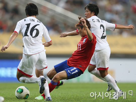 [아시아경제 정재훈 기자] 21일 오후 서울월드컵경기장에서 열린 '2013 EAFF 동아시안컵' 여자부 대한민국과 북한의 경기. 차연희가 슈팅을 때리고 있다.정재훈 기자 roze@<ⓒ세계를 보는 창 경제를 보는 눈, 아시아경제(www.asiae.co.kr) 무단전재 배포금지>