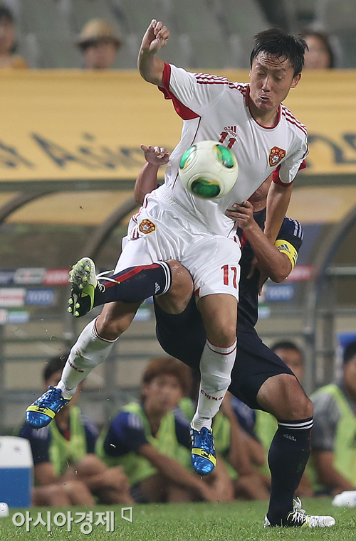 [아시아경제 정재훈 기자] 21일 오후 서울월드컵경기장에서 열린 '2013 EAFF 동아시안컵' 남자부 일본과 중국의 경기. 중국 취 보와 일본 고마노 유이치가 공을 다투고 있다. 정재훈 기자 roze@<ⓒ세계를 보는 창 경제를 보는 눈, 아시아경제(www.asiae.co.kr) 무단전재 배포금지>