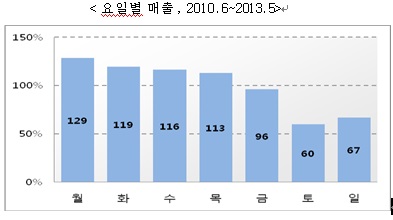 요일별 인터넷 쇼핑 매출. (제공: 삼성카드)