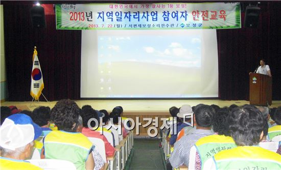 보성군(군수 정종해)은 지난 22일 2013년 하반기 지역일자리사업 발대식 및 안전교육을 사업 참여자 125명을 대상으로 서편제 보성소리 전수관에서 실시했다. 이번 교육은 한국산업안전보건공단의 협조로 안전사고 예방을 위한 산업 재해 예방 지침 준수 및 응급 처치 방법을 교육하였으며, 근로자 대부분이 고령자 및 작업미숙련자임을 감안해 참여자 눈높이에 맞춘 맞춤형 교육과 일상생활에도 도움이 되는 실용교육을 실시해 참여자들로부터 호응을 얻었다. 보성군 지역일자리 사업은 상반기에 소설 태백산맥의 무대 벌교 중도방죽 문화공간 조성사업 등 13개 사업장에서 100여명이 참여하여 지역발전과 관광 활성화에 기여했다.하반기에는 여름철 관광객이 많이 찾는 휴양 명소인 제암산 휴양림과 율포 해안도로 정비사업 등 17개 사업장에서 125명이 참여해 사업을 추진할 계획이다. 또한, 폭염에 따른 안전사고를 예방하기 위하여 혹서기 중에는 근로시간을 각 사업장별로 탄력적으로 운영하고 사업장별 수시 안전 교육을 실시하여 참여자가 안전한 작업환경에서 일할 수 있도록 노력하고 있다. 백인 경제산업과장은 안전교육에 앞서 “일도 중요하지만 단 한건의 안전사고가 발생되지 않도록 각별히 유념할 것”을 당부했다. 한편, 보성군은 일자리 사업 추진 기간 동안 관계공무원이 현지 출장하여 참여자들의 애로사항 및 건의사항을 청취 하는 등 참여자들이 보다 나은 환경에서 일할 수 있도록 현장 행정을 강화할 계획이다.노해섭 기자 nogary@ <ⓒ세계를 보는 창 경제를 보는 눈, 아시아경제(www.asiae.co.kr) 무단전재 배포금지>