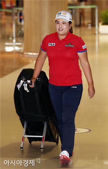 [인천=아시아경제 정재훈 기자] '메이저 3연승'의 위업을 달성한 세계랭킹 1위 박인비(25ㆍKB금융그룹)가 23일 오후 인천국제공항을 통해 귀국하고 있다. 정재훈 기자 roze@<ⓒ세계를 보는 창 경제를 보는 눈, 아시아경제(www.asiae.co.kr) 무단전재 배포금지>