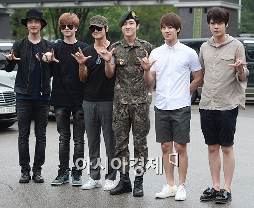 [아시아경제 정준영 기자] 그룹 초신성이 24일 오전 경기도 용인시 처인구 역북동 제3야전군사령부에서 열린 전역식에 참석해 포즈를 취하고 있다.정준영 기자 jjy@<ⓒ아시아경제 & 스투닷컴(stoo.com)이 만드는 온오프라인 연예뉴스>