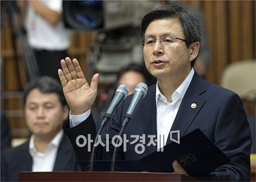 [아시아경제 윤동주 기자] 24일 서울 여의도 국회에서 열린 국정원 국정조사 특위에 참석한 황교안 법무부 장관이 증인선서를 하고 있다.윤동주 기자 doso7@<ⓒ세계를 보는 창 경제를 보는 눈, 아시아경제(www.asiae.co.kr) 무단전재 배포금지>