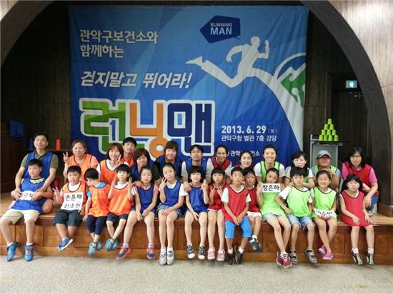 [아시아경제 박종일 기자]관악구(구청장 유종필)는 ‘토요 어린이 건강클럽’ 사업 일환으로 27일을 ‘런닝맨 데이’로 정하고 가족단위 놀이형 운동대회를 개최할 예정이다.어린이 발달단계에 맞춘 프로그램으로 가족 간 미션을 수행하며 공중파 방속국의 일 예능 프로그램인 ‘런닝맨’과 유사하게 진행된다. 사람이 말판이 돼 주사위를 던지며 대형 부루마블을 해보고, 편식예방을 위한 채소 꼭꼭 씹어먹기 등 어린이들 식습관 교정을 위한 게임과 관악구 보건소 각 부서의 업무 내용을 퀴즈로 맞춰보는 시간 등 다양한 프로그램이 마련됐다. 이번 행사는 운동발달 연구소 협력으로 유아체육전문 강사를 초빙해 프로그램을 진행하고 취약계층 중심으로 구성돼 있는 건강동아리 가족 50여 명을 초대할 예정이다.