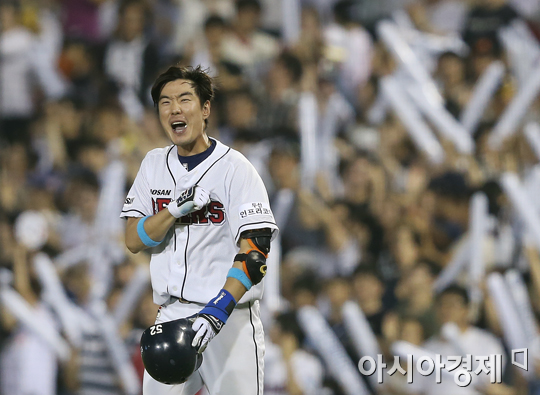 [아시아경제 정재훈 기자] 26일 오후 서울 잠실야구장에서 열린 '2013 한국야쿠르트 세븐 프로야구' LG 트윈스와 두산 베어스의 경기. 6회말 1사 2, 3루 상황 김재호가 1타점 적시타를 치고 가슴을 치며 기뻐하고 있다.정재훈 기자 roze@<ⓒ세계를 보는 창 경제를 보는 눈, 아시아경제(www.asiae.co.kr) 무단전재 배포금지>