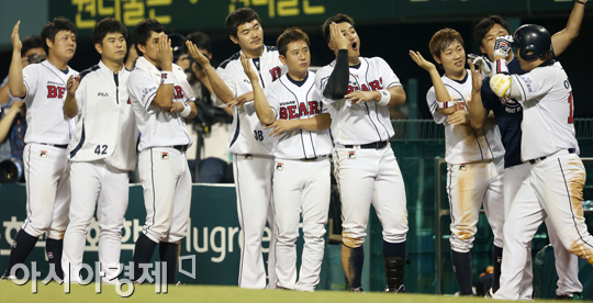 [아시아경제 정재훈 기자] 26일 오후 서울 잠실야구장에서 열린 '2013 한국야쿠르트 세븐 프로야구' LG 트윈스와 두산 베어스의 경기. 7회말 1사 2루 상황 이원석이 좌익수 뒤 투런홈런을 치고 동료들과 기쁨을 나누고 있다.정재훈 기자 roze@<ⓒ세계를 보는 창 경제를 보는 눈, 아시아경제(www.asiae.co.kr) 무단전재 배포금지>