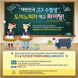 [아시아경제 오주연 기자]도미노피자는 대입 수능을 앞둔 수험생들을 위해 '고 3 수험생 피자파티' 이벤트를 진행한다고 29일 밝혔다. 이번 이벤트는 더위와 공부에 지친 수험생들을 찾아가 무료로 갓 구운 피자를 증정하는 힐링 이벤트. 수험생을 응원하는 메시지를 남기면 사연의 주인공이 있는 학교 및 단체에 피자 제조 시설이 탑재된 도미노 파티카가 방문해 현장에서 요리한 도미노피자를 선물할 예정이다. 이벤트 참여는 오는 31일까지 도피노피자 홈페이지를 통해 응모할 수 있으며 전국의 고3 수험생, 담임선생님, 부모님 등 수험생을 응원하고 싶은 사람이라면 누구나 참여 가능하다. 오주연 기자 moon170@<ⓒ세계를 보는 창 경제를 보는 눈, 아시아경제(www.asiae.co.kr) 무단전재 배포금지>