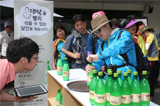 ▲소비자들이 국순당 막걸리 빨리섞기 행사에 참여하고 있다.