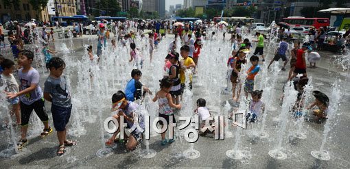 [아시아경제 백소아 기자] 서울 낮 기온이 32도를 기록하며 무더위를 보인 1일 서울 세종로 광화문광장 분수에서 어린이들이 더위는 잊은 듯 물놀이를 즐기고 있다.백소아 기자 sharp2046@<ⓒ세계를 보는 창 경제를 보는 눈, 아시아경제(www.asiae.co.kr) 무단전재 배포금지>