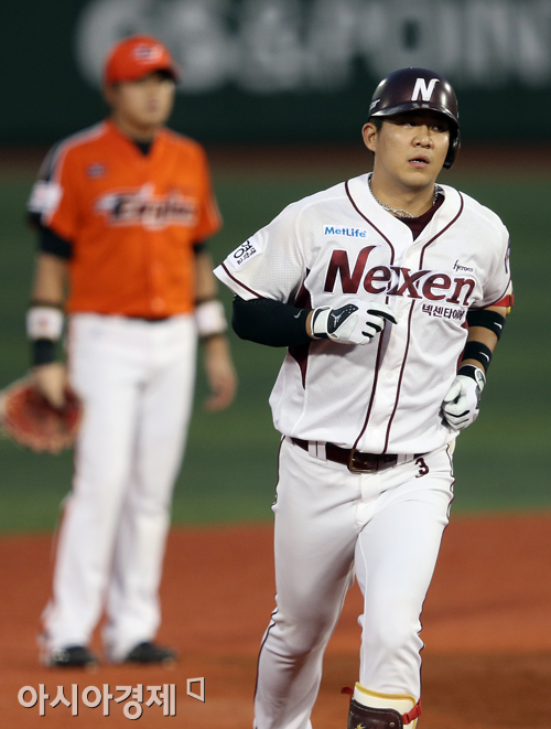 [아시아경제 정재훈 기자] 1일 오후 서울 목동야구장에서 열린 '2013 한국야쿠르트 세븐 프로야구' 넥센 히어로즈와 한화 이글스의 경기. 4회말 무사 만루 상황 김민성이 만루홈런을 치고 그라운드를 돌고 있다.정재훈 기자 roze@<ⓒ세계를 보는 창 경제를 보는 눈, 아시아경제(www.asiae.co.kr) 무단전재 배포금지>