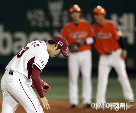[아시아경제 정재훈 기자] 1일 오후 서울 목동야구장에서 열린 '2013 한국야쿠르트 세븐 프로야구' 넥센 히어로즈와 한화 이글스의 경기. 넥센 한현희가 8회초 무사 만루 상황 송광민에게 밀어내기 사구를 허용하고 있다.정재훈 기자 roze@<ⓒ세계를 보는 창 경제를 보는 눈, 아시아경제(www.asiae.co.kr) 무단전재 배포금지>