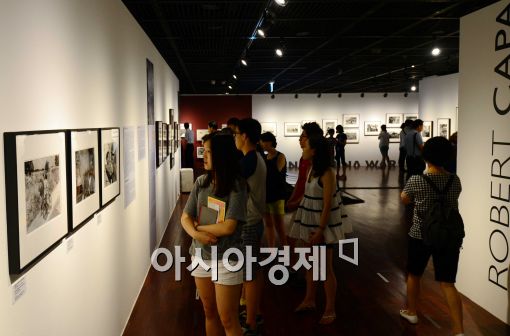 [아시아경제 최우창 기자]2일 서울 세종문화회관에서 열린 '로버트 카파 탄생 100주년 사진전'을 찾은 시민들이 작품을 감상하고 있다.최우창 기자 smicer@<ⓒ세계를 보는 창 경제를 보는 눈, 아시아경제(www.asiae.co.kr) 무단전재 배포금지>
