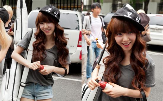 [아시아경제 박건욱 기자]걸그룹 AOA 블랙 민아의 출근길 모습이 포착됐다. 2일 AOA 팬클럽 트위터에는 'AOA 민아, 오늘 아침 출근길'이라는 제목의 사진이 공개됐다. 사진 속에는 자신의 몸집만한 베이스를 한 쪽 어깨에 메고 과일 주스를 든 채 방송국으로 향하는 민아의 모습이 담겨져 있다. 특히 AOA 블랙의 신곡 '모야'가 새겨진 모자를 쓴 민아는 팬들 한 명 한 명에게 환한 미소를 지어 보이며 감사인사를 전해 눈길을 끈다. 한편 AOA 블랙은 이날 오후 방송하는 KBS2 '뮤직뱅크'에 출연해 '모야' 무대를 선보인다. 박건욱 기자 kun1112@<ⓒ세계를 보는 창 경제를 보는 눈, 아시아경제(www.asiae.co.kr) 무단전재 배포금지>