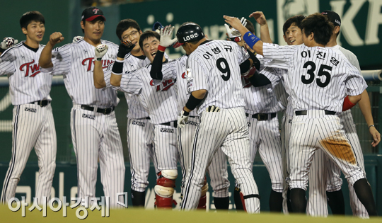 [아시아경제 정재훈 기자] 2일 오후 서울 잠실야구장에서 열린 '2013 한국야쿠르트 세븐 프로야구' LG 트윈스와 삼성 라이온즈의 경기. 6회말 2사 1루 상황 이병규가 우익수 뒤 투런홈런을 치고 동료들과 기쁨을 나누고 있다.정재훈 기자 roze@<ⓒ세계를 보는 창 경제를 보는 눈, 아시아경제(www.asiae.co.kr) 무단전재 배포금지>
