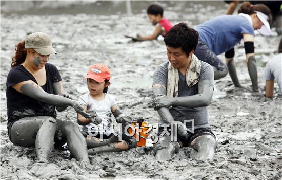 지난 3일 전남 보성군 벌교읍 장암리 일원에서 열린 '제3회 전라남도지사배 레저뻘배대회'에 참가한 관광객들이 갯벌에서 피부에 좋은 천연 머드팩을 하고 있다. 사진제공=보성군노해섭 기자 nogary@ <ⓒ세계를 보는 창 경제를 보는 눈, 아시아경제(www.asiae.co.kr) 무단전재 배포금지>