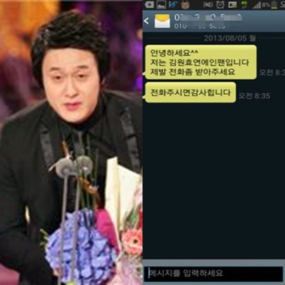 [아시아경제 장영준 기자]개그맨 김원효가 유대전화 번호가 노출된 데 대한 고충을 토로했다.김원효는 5일 오전 자신의 트위터에 "이러지는 맙시다. 아침부터.. 어떻게 유출됐는지는 모르지만 우리도 숨 좀 쉬며 삽시다"라는 글을 남겼다.이어 "예의를 좀 지킵시다. 아무리 팬이신 건 알겠지만 부모님보다 전화를 자주 하면 어떡해요"라는 글과 함께 자신의 휴대전화 메시지 화면을 캡처한 사진을 공개했다. 공개된 사진에는 "팬입니다. 제발 전화 좀 받아주세요. 전화주시면 감사합니다"라고 적힌 메시지가 적혀 있다. 그런데 그 메시지 수신 시간이 오전 8시 35분이다.김원효의 고충 토로를 접한 누리꾼들은 "김원효 고충 토로할 만하네, 어떻게 번호가 유출된거지?" "김원효 고충 토로, 그 심정 이해 합니다" "팬이라면, 김원효 고충 토로에 귀를 기울여라" 등의 반응을 보였다.장영준 기자 star1@<ⓒ세계를 보는 창 경제를 보는 눈, 아시아경제(www.asiae.co.kr) 무단전재 배포금지>