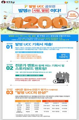 [아시아경제 왕성상 기자] 특허청이 국민들의 지식재산권에 대한 이해와 관심을 높이기 위해 ‘발명 사용제작콘텐츠(UCC) 공모전 : 노다지’를 연다. ‘발명은 000’란 주제의 공모전은 빈칸(000)안에 발명을 정의하거나 설명하는 문구(또는 문장)를 넣어 작품으로 만들면 된다.노다지는 ‘NO touch, 다함께 만드는 지식재산’의 줄임말로 발명과 특허가 어렵고 딱딱하다는 이미지에서 벗어나 일반인들에게 친숙하게 다가서기 위한 조어(造語)다. 응모자는 참가지원서, 제작계획서, 스토리보드(이야기 구성도)를 이달 29일까지 이메일(kipoworld@hanmail.net)로 보내면 된다. 출품작 중 1차 예선을 거친 20명(팀)은 2~4명의 팀(또는 개인)별로 동영상기획 및 제작전문가로부터 도움을 받아 제작계획서를 손질해 최종작품을 내면 된다.이렇게 제출된 UCC는 심사위원들의 평가를 거쳐 오는 10월말 시상식을 갖고 ▲1등(1명) 300만원 ▲2등(1명) 150만원 ▲3등(3명) 50만원의 상금을 받는다. 만들어진 UCC는 유튜브에 공개되며 일정조회 수를 넘은 사람(또는 팀)에겐 200만원의 러닝 개런티(Running Guarantee)도 준다. 신문, 방송에 소개되고 KTX, 지하철 등에 특허청 영상홍보물로도 쓰인다.더 자세한 내용은 특허청블로그(‘아이디어로 여는세상 //blog.daum.net/kipoworld/3853’에 들어가 보면 알 수 있다.정연우 특허청 대변인(과장)은 “일반국민들이 공감할 수 있는 대중성 있고 완성도 높은 UCC를 찾기 위해 다른 정부부처에서 하는 것과 달리 전문가 멘토링을 통한 UCC 만들기, 정부 최초 유튜브조회 수에 따른 러닝 개런티가 접목되는 게 특징”이라고 말했다왕성상 기자 wss4044@<ⓒ세계를 보는 창 경제를 보는 눈, 아시아경제(www.asiae.co.kr) 무단전재 배포금지>왕성상 기자 wss4044@<ⓒ아시아 대표 석간 '아시아경제' (www.newsva.co.kr) 무단전재 배포금지>