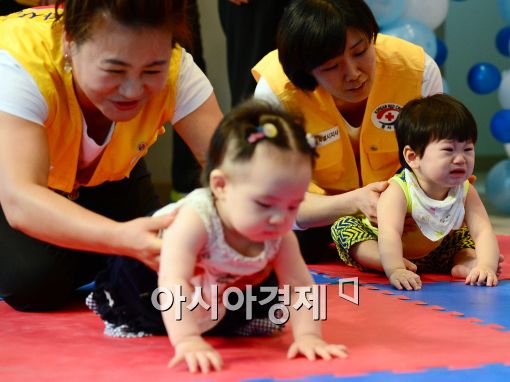 [아시아경제 최우창 기자]7일 서울 강북구 번동 강북소방서 4층 대강당에서 열린 '제9회 강북구 모유수유아 선발대회'에 참가한 아기들이 엄마에게 기어가기 경기를 하고 있다최우창 기자 smicer@<ⓒ세계를 보는 창 경제를 보는 눈, 아시아경제(www.asiae.co.kr) 무단전재 배포금지>