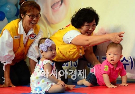 [아시아경제 최우창 기자]7일 서울 강북구 번동 강북소방서 4층 대강당에서 열린 '제9회 강북구 모유수유아 선발대회'에 참가한 아기들이 엄마에게 기어가기 경기를 하고 있다최우창 기자 smicer@<ⓒ세계를 보는 창 경제를 보는 눈, 아시아경제(www.asiae.co.kr) 무단전재 배포금지>