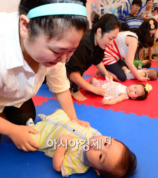 [아시아경제 최우창 기자]7일 서울 강북구 번동 강북소방서 4층 대강당에서 열린 '제9회 강북구 모유수유아 선발대회'에 참가한 아기들이 누워서 뒤집기 경기를 하고 있다.최우창 기자 smicer@<ⓒ세계를 보는 창 경제를 보는 눈, 아시아경제(www.asiae.co.kr) 무단전재 배포금지>