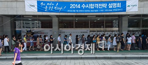 [아시아경제 윤동주 기자] 11일 서울 강남구 진선여고에서 열린 '2014 수시합격전략 설명회'를 찾은 수험생들과 학부모들이 길게 줄지어 입장하고 있다.윤동주 기자 doso7@asiae.co.kr<ⓒ세계를 보는 창 경제를 보는 눈, 아시아경제(www.asiae.co.kr) 무단전재 배포금지>