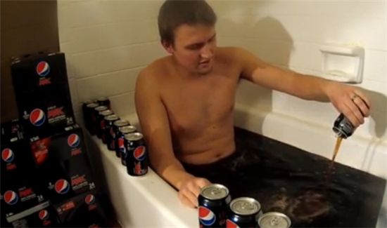 ▲ 콜라로 목욕하는 남자(출처: 유튜브)