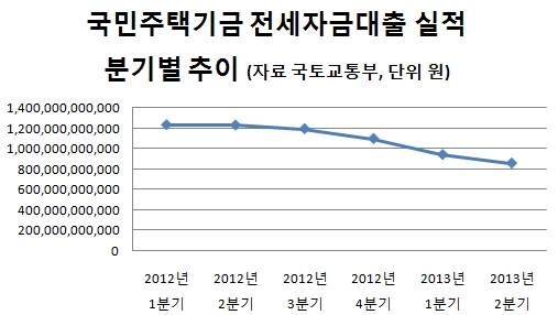 [아시아경제 박미주 기자]전셋값이 폭등하는데도 저렴한 금리가 큰 장점인 정부의 전세자금대출 실적은 줄었다. 시중은행 전세자금 대출잔액이 급증한 것과 대조적이다. 대출기준 변화와 저소득층의 '월세 살이' 비중이 높아지면서 생긴 현상으로 풀이된다. 이에 전세뿐 아니라 월세를 포함한 종합 대책이 나와야 한다는 지적이 제기된다.16일 국토교통부에 따르면 올해 2분기 국민주택기금 근로자ㆍ서민 전세자금대출 실적은 8573억5700만원으로 전분기 9419억8000만원보다 8.98% 줄었다. 지난해 같은 기간 1조2335억6500만원보다는 30.49% 감소했다.2012년 전체의 정부 전세자금 대출금액은 총 4조7670억5700만원으로 2011년 4조7881억3700만원보다 소폭 줄었다. 분기별로 보면 지난해엔 1조1000억~1조3000억원대였으며 올 들어서는 1조원 아래로 급감했다. 정부의 정책 변화와 전세물량 감소, 월세물량 증가 현상이 맞물린 탓이다.정부는 올 들어 전세자금대출 신청 소득 요건을 단독 세대주 소득에서 부부합산 총소득 기준으로 변경했다. 세대주 단독 소득 3000만원 이하일 때 신청 가능하던 요건을 부부합산 총소득 4000만원 이하로 조정한 것이다. 그러다 지난 4월엔 부부합산 소득 요건을 4500만원 이하로, 다시 지난 6월 5000만원 이하(신혼부부 5500만원 이하)로 수정했다. 대출금리 또한 올 초 3.7%에서 현재는 3.3%로 내렸다.국토부 관계자는 "이전에는 세대주 단독 소득만 기준으로 하다 보니 상대적으로 고소득자가 일하지 않는 사람을 세대주로 변경해 편법으로 전세자금을 대출받았다"며 "이를 시정하기 위해 올해부터 전세자금대출 소득요건 기준을 변경했고, 이 때문에 올해 전세자금대출 실적이 지난해보다 줄어든 것으로 보인다"고 전했다.