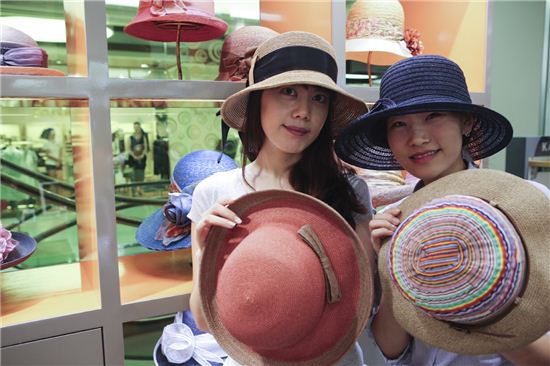 [아시아경제 이초희 기자]14일, 현대백화점 압구정본점은 라피아, 지사 등 천연소재로 만든 모자를 선보인다. 밀짚모자는 가볍고 통풍이 잘 되는 데다 챙이 넓어 뜨거운 햇볕과 자외선으로부터 피부를 보호해 줄 수 있다는 점이 특징이다.이초희 기자 cho77love@asiae.co.kr<ⓒ세계를 보는 창 경제를 보는 눈, 아시아경제(www.asiae.co.kr) 무단전재 배포금지>