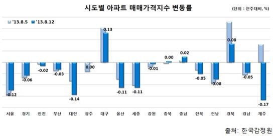 [아시아경제 이민찬 기자]아파트 매매가격 하락세가 지방까지 확대되고 있지만 대구·경북 지역은 유일하게 상승세를 보이고 있다. 전국 10개 혁신도시 가운데 처음으로 이달 말 공기업(한국감정원)이 입주하는 영향이란 분석이다.한국감정원에 따르면 주간 아파트 가격동향 조사(12일 기준) 결과 전국 아파트 평균 매매가격이 전주 대비 0.05% 떨어지며 6주 연속 하락한 반면, 대구(0.13%)와 경북(0.08%)은 상승세를 이어갔다.시도별로는 제주(-0.17%), 대전(-0.14%), 서울(-0.12%), 울산(-0.11%), 세종(-0.11%), 전남(-0.08%) 등의 순으로 하락, 지방 아파트 매매가격이 25주 만에 하락세로 돌아섰다. 전셋값은 장기간 상승세를 보이고 있다. 지방의 평균 전셋값이 전주 대비 0.07% 오르며 52주 연속 상승한 가운데 대구(0.13%)와 경북(0.13%)도 상승세를 이어갔다. 이전 공공기관 직원들이 미리 전셋집 마련에 나서면서 웃돈을 주고도 방을 구하기 어려울 정도로 매물이 부족한 상황이다.대구혁신도시와 인접한 대구 동구 안심동 S공인 관계자는 "인근 전셋값이 이미 3000만~5000만원 정도 올랐다"면서 "매물이 워낙 없어서 웃돈을 주고도 집을 구하기 힘든 상황"이라고 말했다.함종영 한국감정원 책임연구원은 이에 대해 "대구·경북 지역은 지난 2~3년 동안 공급 물량이 다른 지역에 비해 많지 않았다"면서 "혁신도시 인근 지역 중소형 아파트 가격이 장기간 상승한 영향이 컸다"고 설명했다.한편 대구혁신도시는 대구 동구 신서·동내동 등 421만여㎡에 한국감정원, 한국가스공사 등 11개 기관이 들어설 예정이다. 이달 말 한국감정원을 시작으로 내년 말 공공기관 이전이 끝나면 약 2만3000여명이 거주하게 될 것으로 보인다. 경북혁신도시는 경북 김천시 남면·농소면 등 381만여㎡에 한국도로공사 등 12개 공공기관이 내년 말이면 이전을 완료할 계획이다. 예상인구는 2만6000여명이다.이민찬 기자 leemin@asiae.co.kr<ⓒ세계를 보는 창 경제를 보는 눈, 아시아경제(www.asiae.co.kr) 무단전재 배포금지>