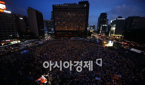 [아시아경제 백소아 기자] 17일 서울 중구 서울광장에서 열린 '제8차 범국민 촛불대회'에서 시민들이 촛불이 서울광장을 가득 채웠다.백소아 기자 sharp2046@asiae.co.kr<ⓒ세계를 보는 창 경제를 보는 눈, 아시아경제(www.asiae.co.kr) 무단전재 배포금지>