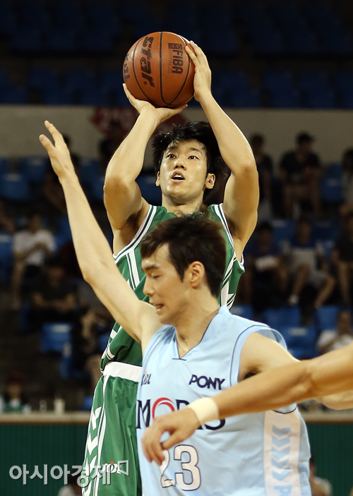 [아시아경제 정재훈 기자] 18일 오후 서울 잠실학생체육관에서 열린 '2013 KB국민카드 프로-아마 최강전' 울산 모비스와 원주 동부의 경기. 동부 이광재가 슛을 쏘고 있다.정재훈 기자 roze@asiae.co.kr<ⓒ세계를 보는 창 경제를 보는 눈, 아시아경제(www.asiae.co.kr) 무단전재 배포금지>