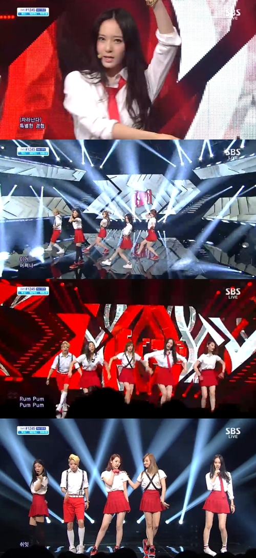 [아시아경제 이금준 기자]그룹 에프엑스(f(x))가 한층 더 진화한 색깔을 선사했다.에프엑스는 18일 오후 방송한 SBS '인기가요'에 출연해 신곡 '첫 사랑니(Rum Pum Pum Pum)'를 열창했다. 이날 각자의 개성을 살린 의상을 입고 무대에 등장한 멤버들은 특유의 퍼포먼스는 물론 안정적인 가창력을 뽐내며 눈과 귀를 사로잡았다. 이들의 신곡 '첫 사랑니'는 신비롭고 중독성 있는 기타 사운드와 흥겨운 퍼커션 리듬이 인상적인 팝 댄스곡으로 마칭 밴드 사운드가 어우러져 경쾌한 분위기를 자아낸다는 평이다.한편 이날 '인기가요'에는 2NE1, 에프엑스, 비스트, 김현중, 브라운아이드걸스, 제국의아이들, 엑소, B.A.P, 임정희, 걸스데이, 에이핑크, M.I.B, 에이젝스, 빅스, 더블에이, 크레용팝, 파이브돌스, AOA, 베스티 등이 출연했다.이금준 기자 music@asiae.co.kr<ⓒ세계를 보는 창 경제를 보는 눈, 아시아경제(www.asiae.co.kr) 무단전재 배포금지>