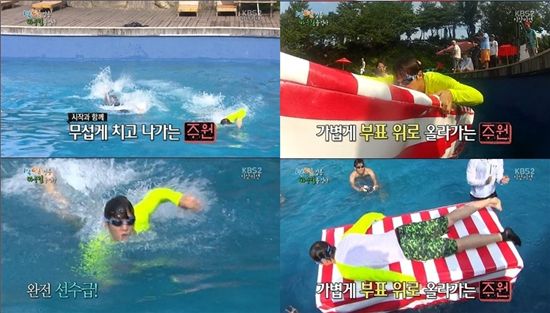 [아시아경제 유수경 기자]배우 주원이 선수급 수영 실력을 공개했다.지난 18일 방송된 KBS2 '해피선데이-1박 2일'에서는 강릉 바우길 트레킹 편이 전파를 탔다.이날 주원은 멤버들과 함께 기상 미션 결정권을 두고 물속에서 서로 스타킹을 벗기는 게임에 도전했다. 이후 주원은 성시경과 최후의 2인이 됐다. 승자 결정을 위한 수영 대결에서 주원은 경기가 시작되자마자 무섭게 치고 나가며 선수급 수영 실력을 뽐냈다. 수영 실력을 뽐낸 주원은 먼저 부표 위에 올라갔고, 기상미션 결정권을 획득했다.한편 수영 실력을 뽐낸 주원은 KBS2 '굿 닥터'(극본 박재범, 연출 기민수, 김진우)에서 열연을 펼치고 있다.유수경 기자 uu84@asiae.co.kr<ⓒ세계를 보는 창 경제를 보는 눈, 아시아경제(www.asiae.co.kr) 무단전재 배포금지>