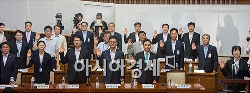 [아시아경제 윤동주 기자] 국정원 댓글 의혹 사건 등의 진상규명을 위한 국정조사가 열린 19일 국정원 여직원 김모씨등 국정원 관계자등 증인들이 증인선서를 하고 있다.윤동주 기자 doso7@asiae.co.kr<ⓒ세계를 보는 창 경제를 보는 눈, 아시아경제(www.asiae.co.kr) 무단전재 배포금지>