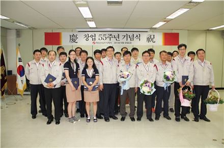 화성산업은 30일 창업 55주년을 맞아 장기근속사원 35명과 모범사원에게 표창장을 수여했다.