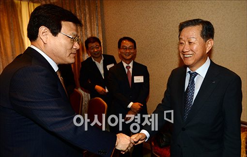 [아시아경제 윤동주 기자] 아시아경제신문과 아시아경제팍스TV 주최로 2일 서울 중구 은행회관에서 열린 '제1회 아시아 보험세미나'에 참석한 최종구(왼쪽) 금융감독원 수석부원장이 김규복 생명보험협회장과 인사를 나누고 있다.윤동주 기자 doso7@asiae.co.kr<ⓒ세계를 보는 창 경제를 보는 눈, 아시아경제(www.asiae.co.kr) 무단전재 배포금지>
