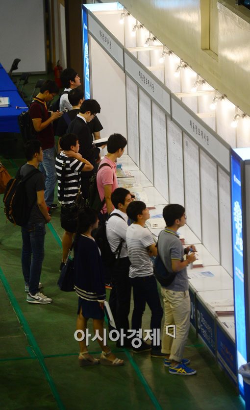 [아시아경제 백소아 기자] 2일 서울 성동구 한양대학교에서 열린 '2013 한양 잡 디스커버리 페스티벌'에서 학생들이 채용공고게시판을 살펴보고 있다. 교육부가 후원하고 한국산업기술진흥협회와 한양대 커리어개발센터가 공동으로 주최한 이번 채용박람회는 삼성그룹과 현대차그룹 등 국내 대기업 계열사를 비롯해 우수 중견기업, 외국계 기업 등 170여 개 기업이 참가했다.백소아 기자 sharp2046@asiae.co.kr<ⓒ세계를 보는 창 경제를 보는 눈, 아시아경제(www.asiae.co.kr) 무단전재 배포금지>