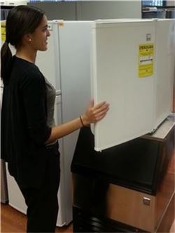 ▲미국 코스트코 매장에서 현지 소비자가 동부대우전자 냉장고를 구경하고 있다.