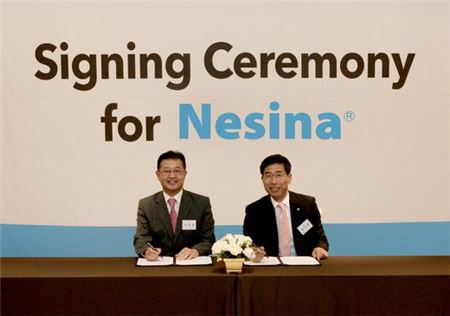 [아시아경제 박혜정 기자]제일약품과 한국다케다제약은 당뇨병 치료제 '네시나'(성분명 알로글립틴)의 공동 마케팅 계약을 체결했다고 4일 밝혔다.네시나는 DPP-4(혈당조절 중추 인크레틴 호르몬의 작용을 방해하는 효소) 억제제로, 제 2형 당뇨병(성인당뇨병) 환자의 혈당 조절을 향상시키기 위한 식사 요법 및 운동 요법 보조제다. 이 약은 DPP-4 억제제 중 가장 최근에 국내 시장에 진입한 신약으로 지난 5월 31일 식품의약품안전처로부터 국내 승인을 받았다. 제품 출시 시기는 내년 상반기가 될 것으로 보인다.이춘엽 한국다케다제약 대표는 "제일약품과 한국다케다제약은 탄탄한 협력을 바탕으로 2000년 란스톤, 2012년 덱실란트의 성공을 이끌어왔다"며 "새롭고 강력한 DDP-4 억제제인 네시나의 성공을 통해 두 회사의 파트너십이 공고해져 큰 성공을 거두길 기대한다"고 말했다.박혜정 기자 parky@asiae.co.kr<ⓒ세계를 보는 창 경제를 보는 눈, 아시아경제(www.asiae.co.kr) 무단전재 배포금지>