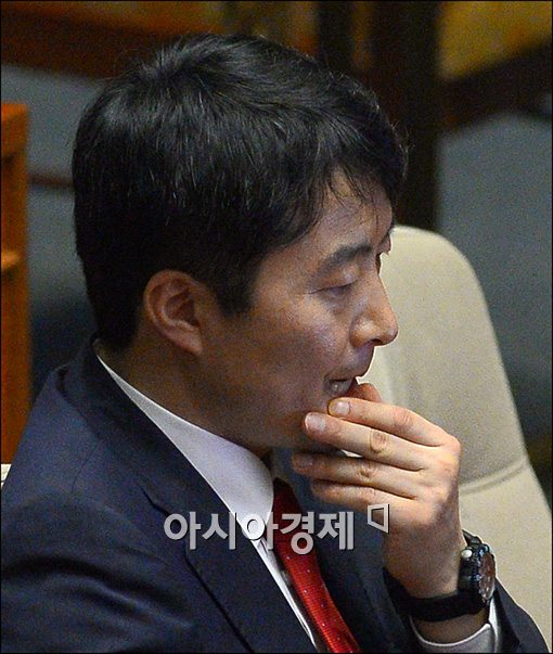 [아시아경제 윤동주 기자] 4일 서울 여의도 국회 본회의장에서 이석기 통합진보당 의원이 체포동의안에 대한 투표가 실시되기 직전 입술을 만지고 있다.윤동주 기자 doso7@asiae.co.kr<ⓒ세계를 보는 창 경제를 보는 눈, 아시아경제(www.asiae.co.kr) 무단전재 배포금지>