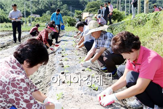 [아시아경제 노해섭 기자] 광주광역시 동구청(청장 노희용)은 4일 오전 노희용 동구청장, 동구의회의원, 주민자치위원장 및 주민, 텃밭조성사업 협의회장 등 50여명이 참여한 가운데 도시농업 활성화를 위한 용연나눔텃밭 개장식을 갖고 모종 심기 체험행사를 실시했다. 사진제공=광주시 동구 노해섭 기자 nogary@<ⓒ세계를 보는 창 경제를 보는 눈, 아시아경제(www.asiae.co.kr) 무단전재 배포금지>