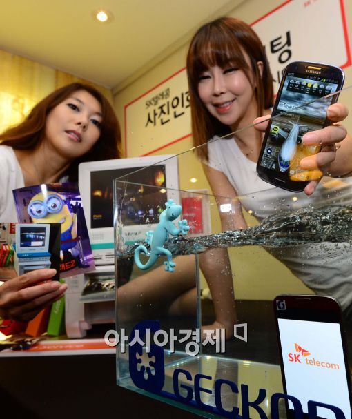 [아시아경제 최우창 기자]SK텔레콤이 5일 서울 태평로 프레스센터에서 열린 차세대 네트워크 기반 상품 및 서비스 혁신 방안 기자회견을 갖고 전국 대리점에 휴대전화를 방수 코팅 및 스마트폰 사진을 무료로 인화해주는 서비스를 선보이고 있다.최우창 기자 smicer@asiae.co.kr<ⓒ세계를 보는 창 경제를 보는 눈, 아시아경제(www.asiae.co.kr) 무단전재 배포금지>