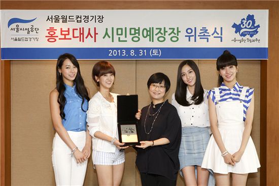 [아시아경제 이금준 기자]걸그룹 베스티가 서울월드컵경기장 홍보대사로 위촉됐다.서울시설공단(이사장 오성규)은 지난달 31일 서울월드컵경기장 홍보대사로 베스티를 위촉하고 위촉패를 전달했다. 혜연, 유지, 다혜, 해령으로 구성된 4인조 걸그룹 베스티는 지난 7월 '두근두근'으로 데뷔했으며 각종 예능 프로그램을 통해 활발한 활약을 펼치고 있다. 베스티는 서울월드컵경기장 홍보대사로서 향후 1년간 각종 행사 및 영상, 홍보물 제작 등에 참여할 예정으로 서울월드컵경기장이 내외국인에게 폭넓게 사랑 받는 경기장이 될 수 있도록 노력을 다할 계획이다. 서울월드컵경기장 홍보대사에 위촉된 베스티는 "데뷔 후 처음으로 홍보대사를 맡게 돼 매우 설레고 떨린다"며 "서울월드컵경기장을 전 세계 사람들에게 알리기 위해 사명감을 갖고 최선을 다하겠다"고 말했다.한편, 베스티는 오는 7일 자선이벤트를 열고 팬들과의 만남을 가질 계획이다.이금준 기자 music@asiae.co.kr<ⓒ세계를 보는 창 경제를 보는 눈, 아시아경제(www.asiae.co.kr) 무단전재 배포금지>